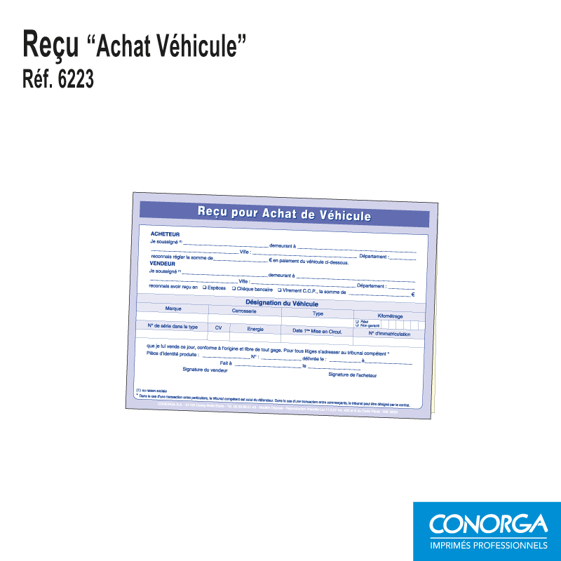 Le Reçu d'Achat Véhicule permet d'attester de l'achat d'un véhicule. Ce document remis au vendeur et signé par l'acheteur et permet aux co-contractants de disposer d'un document à conserver pour attestater de la transaction.